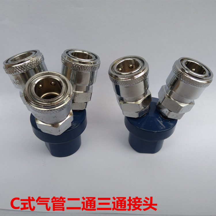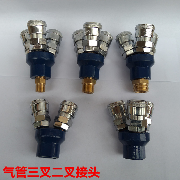 Pneumatic tripods tracheal connector Erfork three-way two-way connector more than fourteen-line gas row 3 inserts Type C Quick Swap