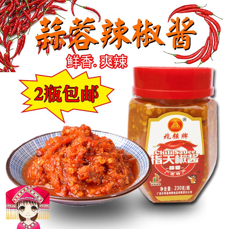 Zhaoqiang brand Zhitian chili sauce 230g bottle garlic flavored chili sauce seasoning sauce Guangxi specialty fresh, spicy and refreshing