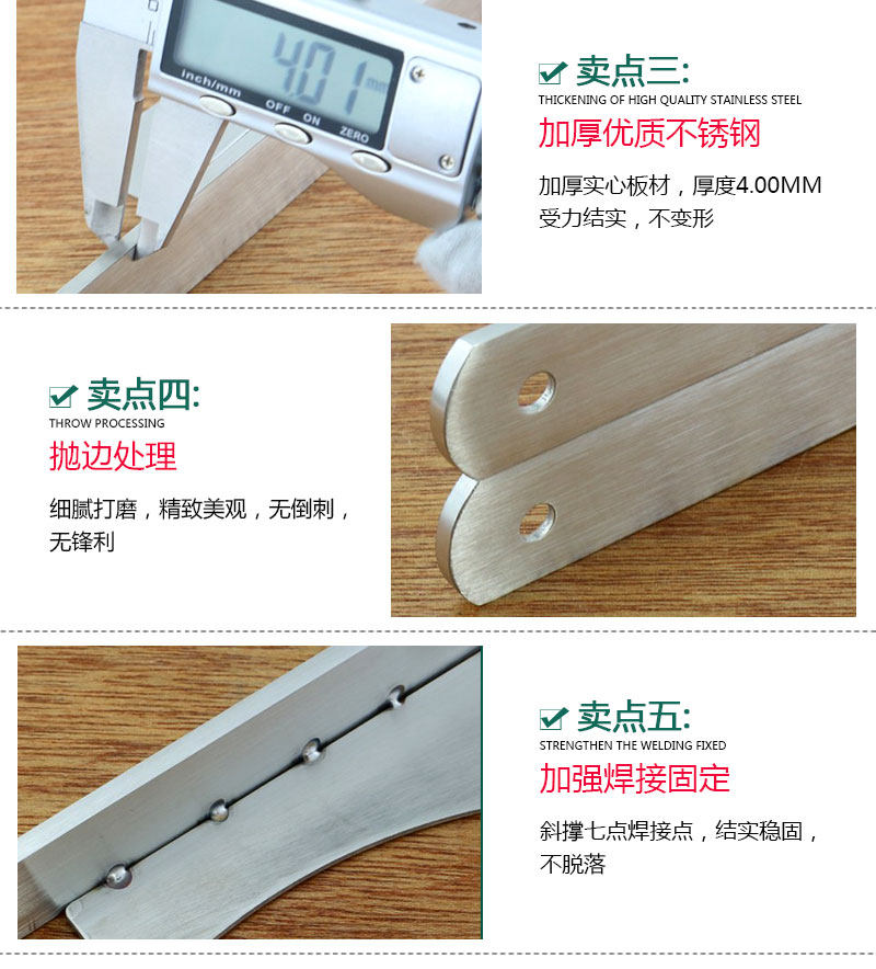 Stainless steel triangle bracket bracket rack wall load-bearing clapboard support frame right-angle bracket layer board up and down