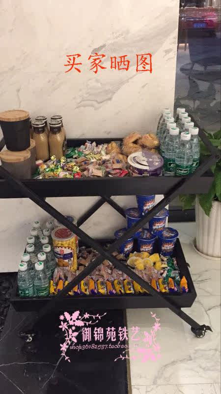 C005 American Retro Iron Art Dining Car Kitchen hand push two-story delivery cart Dining Car Snack rack reservation made