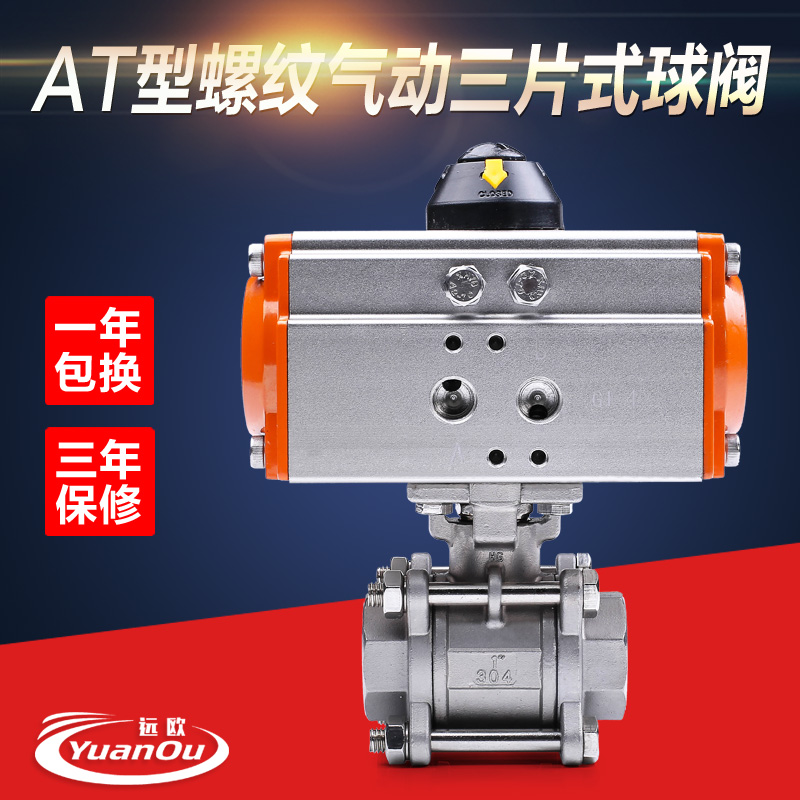 Pneumatic ball valve 304Q611F-16P pneumatic three-piece inner thread stainless steel ball valve DN15 20 25 32