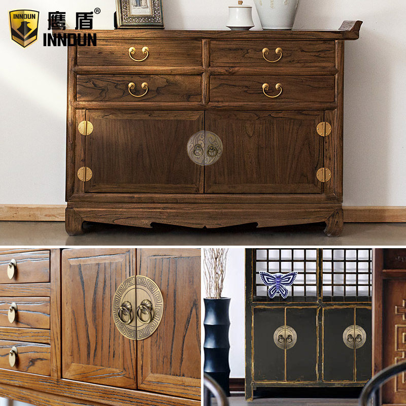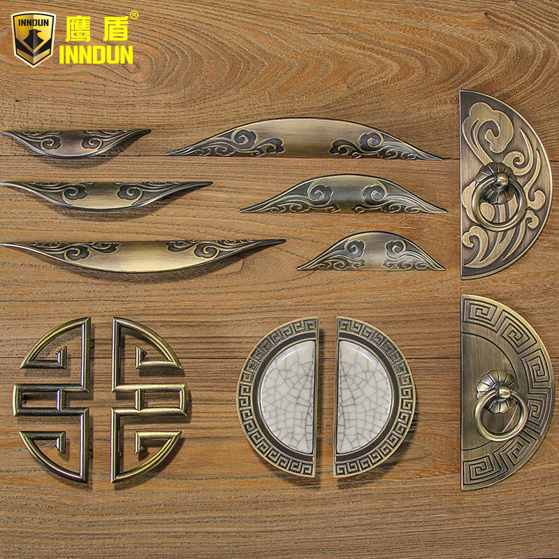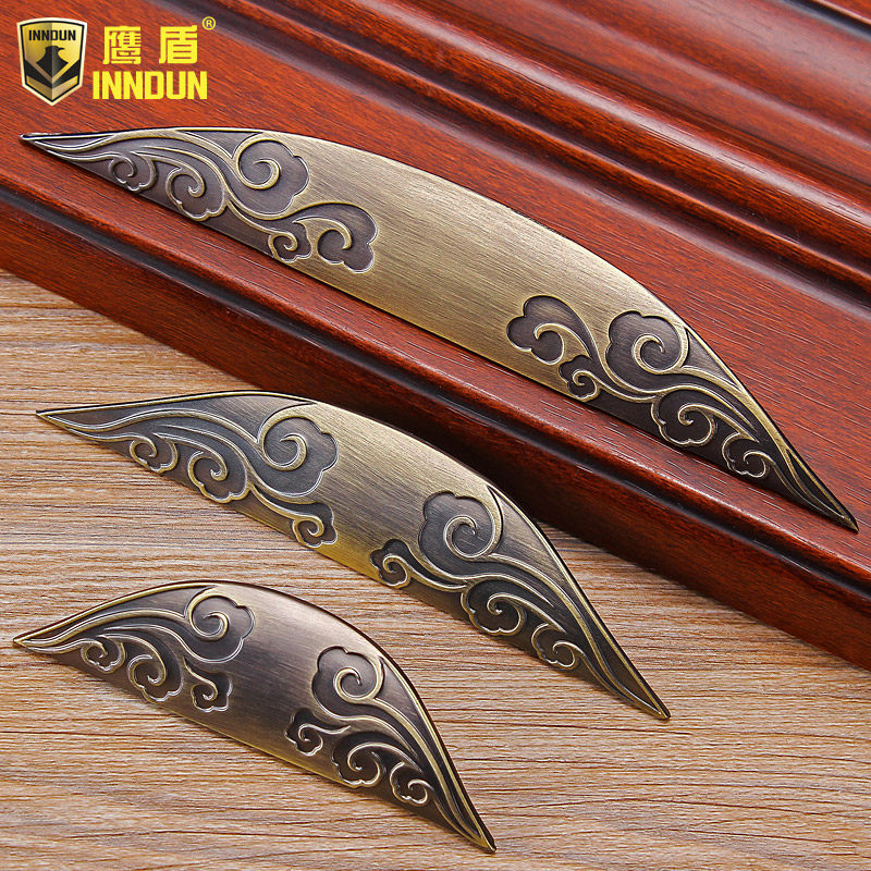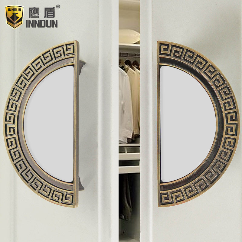 Chinese classical semi-circular hand-in-hand green bronze drawer cabinet door pull hand-in-hand European antique wardrobe overall cabinet handle
