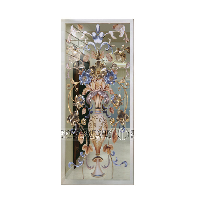 European-style living room entrance background wall art glass carving carving process frosted transparent transparent screen partition wall