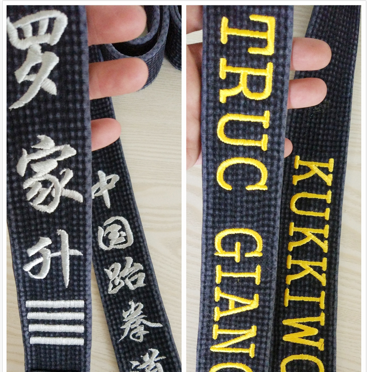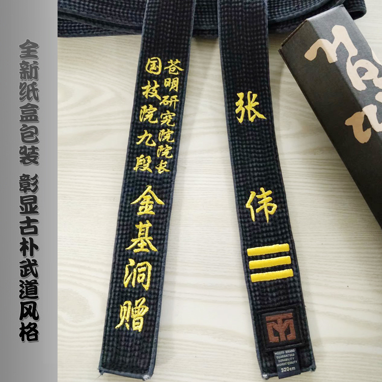 Taekwondo black belt embroidered word washed old coach old belt embroidered black belt master belt