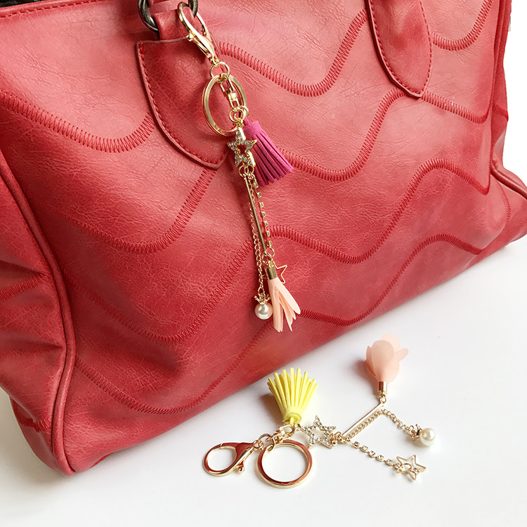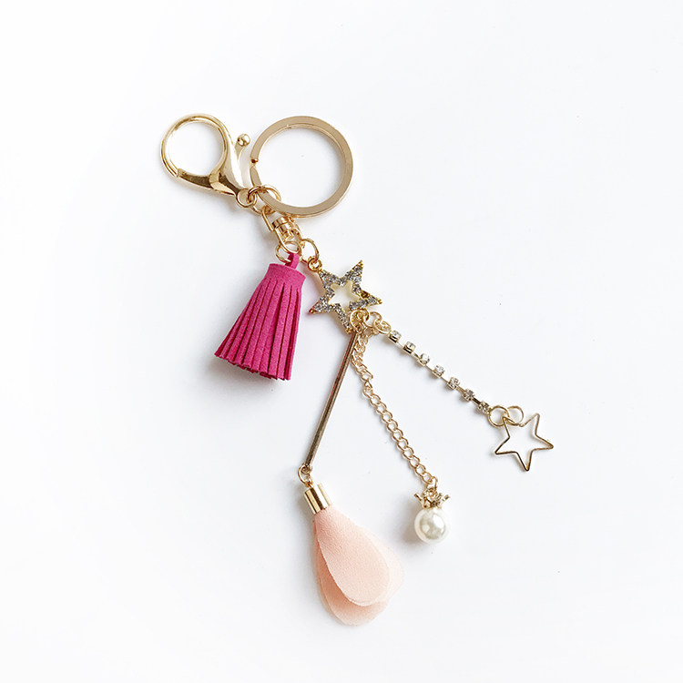 Korean Version Original Pentagram Small Flower Pearl Streaming Su Key Buckle Car Hangry Lady Key Chain Bag Pendant New