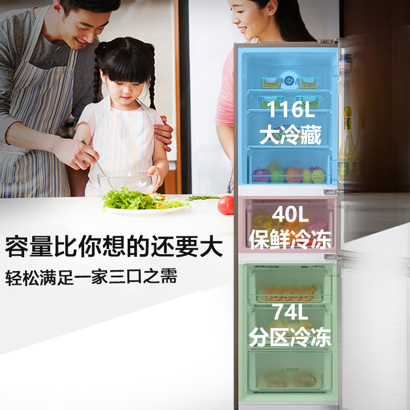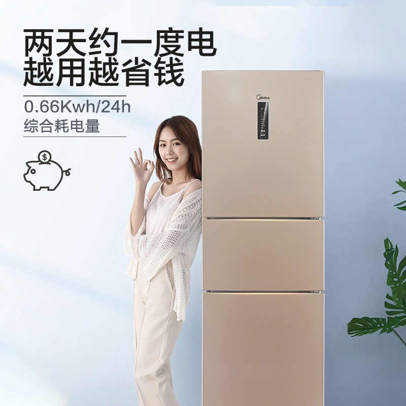 Midea 230l small refrigerator home small three-door freezer dormitory rental double-door Mini refrigerator