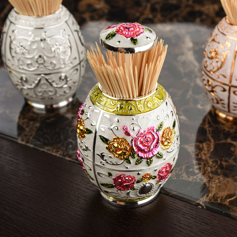 European style creative toothpick tube popular automatic toothpick box pressing toothpick seat table decoration alloy toothpick jar