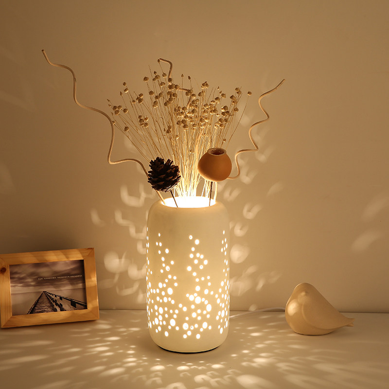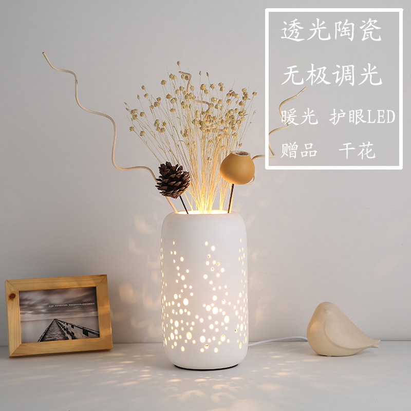 Creative minimalist Ceramics Decoration Flower Arrangement Fashion Cozy Romantic Bedroom Bedside Girlfriends Wedding Gift Ambience Table Lamp