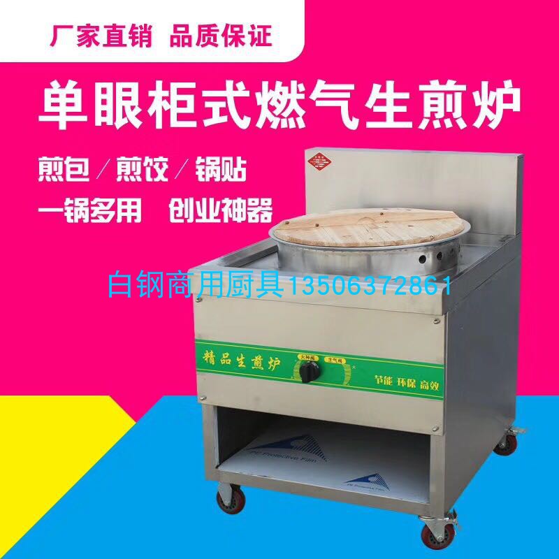 Single-eye raw frying pan pot water frying bag pot stickers stove stainless steel commercial gas gas vertical pan pancakes