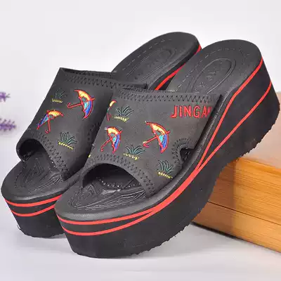 Jingan summer slippers women's thick-soled non-slip lightweight outer wear fashion high-heeled beach slippers foam-soled sandals