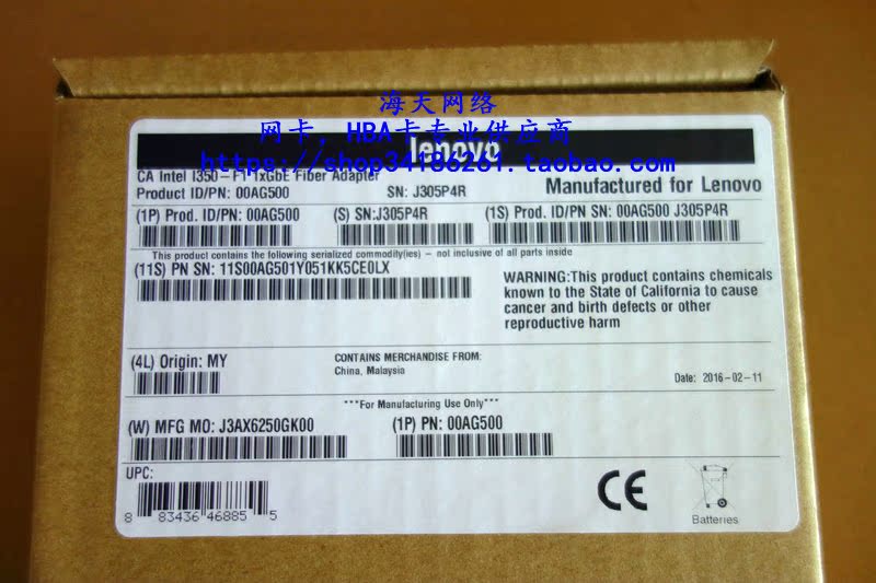 LENOVO 00AG500 I350-F1 1xGbE Fiber Adapter for IBM System x