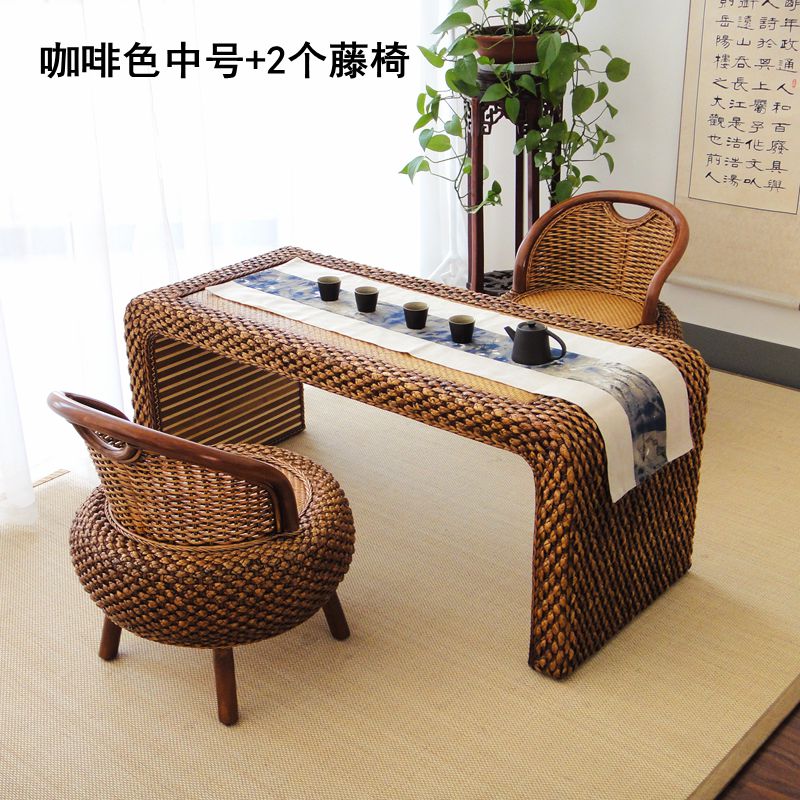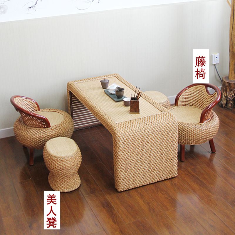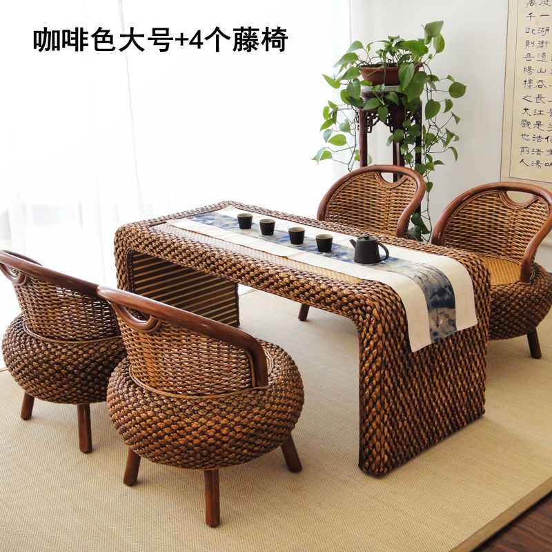 Primary color mid-number tea table 4 rattan chair coffee color rattan with large number tea table 2 rattan benches original color beauty stool No. 2 rattan chair 2 beauty stool coffee color large number 120 * 50 * 50