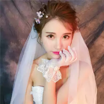 New photo hand yarn wedding gloves Bridal gloves dress accessories Lace short bow Korean style
