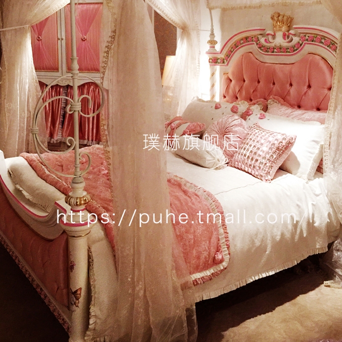 Children's bed girl princess bed pink European dream double all solid wood single children's room girl bed custom