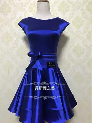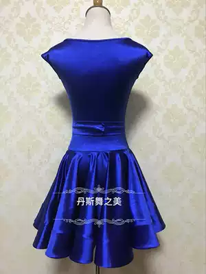 Imported flash elastic word collar over the shoulder sleeve blue super large skirt female children Latin dance standard regulations