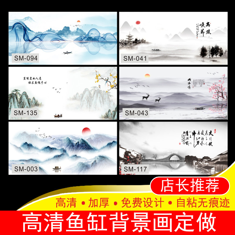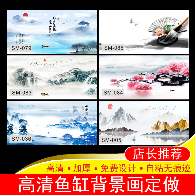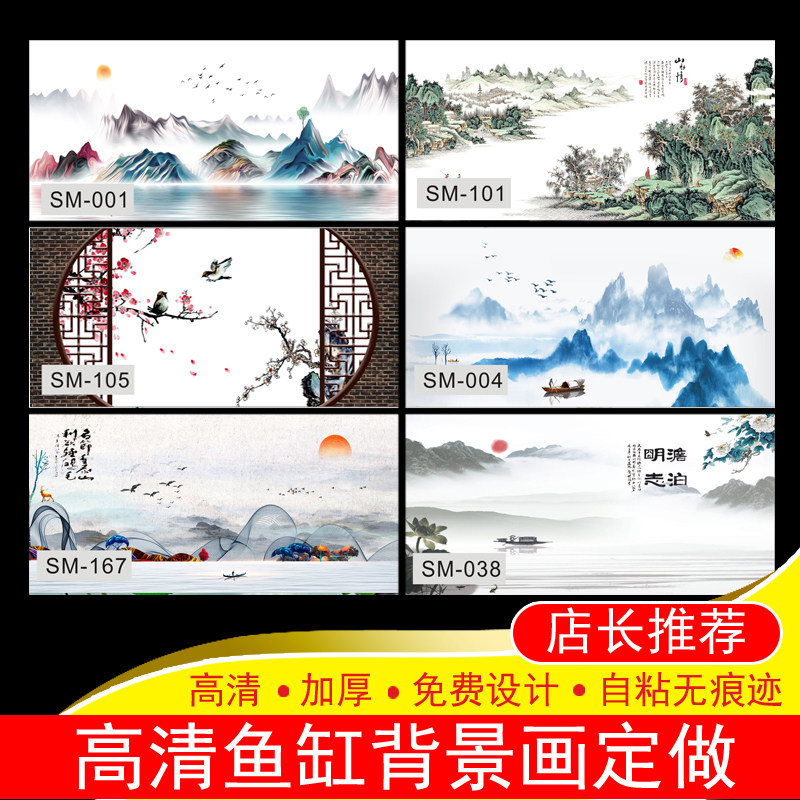 Fish tank background paper painting HD picture thickened custom red dragon white mountain water aquarium decoration picture color god made landscape