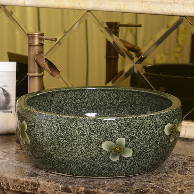 Makeup Room Ceramic Terrace Basin Art Basin Round Table Basin Balcony Washbasin Washbasin Wash Basin Retro Color Glazed Kiln Change
