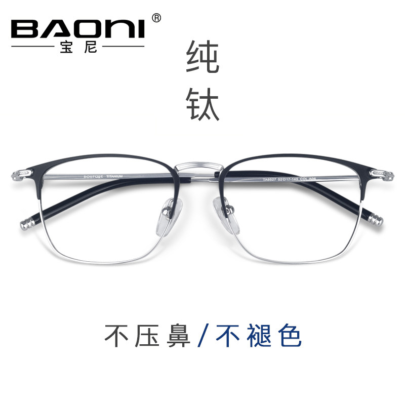 Poni Pure Titanium Ultra Light Non Pressure Nose Retro Fashion Brief Brow Line Half-Frame Spectacle Frame for men and women Patron myopia Large frame