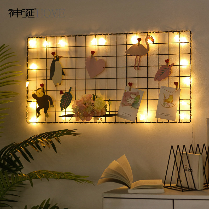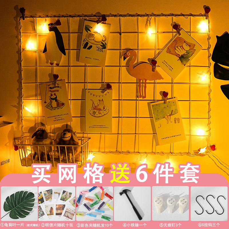 Grid photo wall free of punch ins nets red room arranged decorations photo frame hanging wall iron art grid shelf