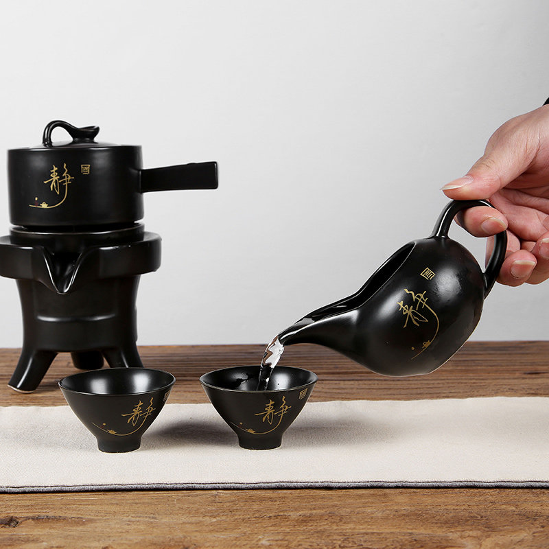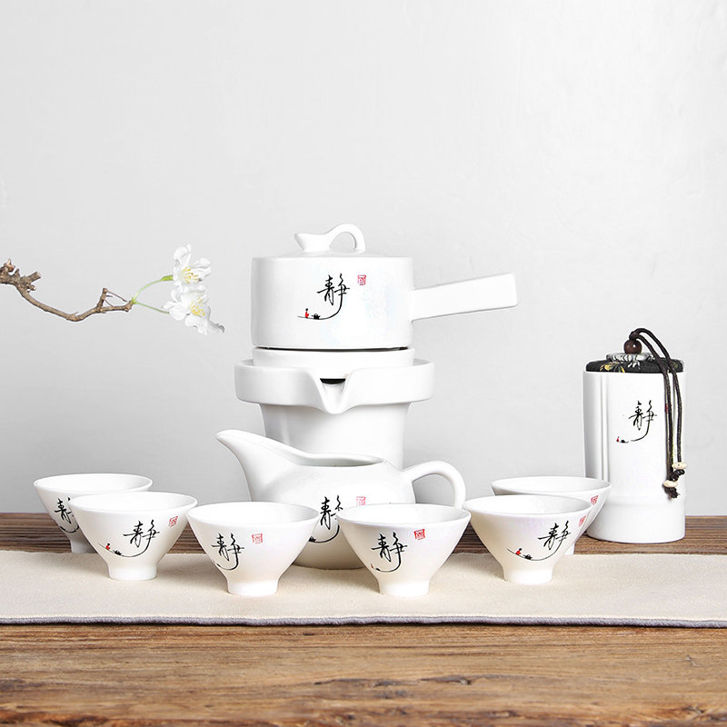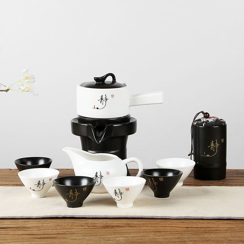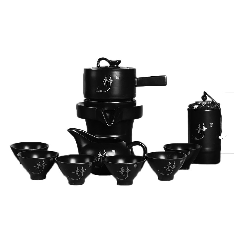 Retro graphite Lucky turn Semi-automatic tea set set Ding Kiln Kung Fu tea set Ceramic household anti-hot lazy man
