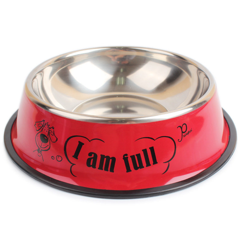 Colorful stainless steel spray English cartoon printed pet pot Teddy Golden Pet Bowl cat pot