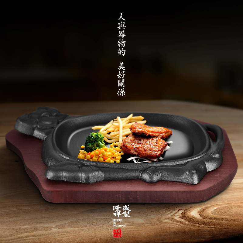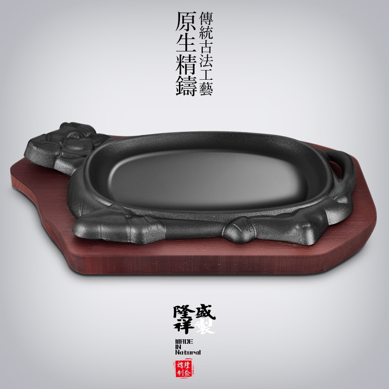 Long Shengxiang big beef teppanyaki plate Japanese barbecue pot fried steak plate Non-stick cast iron teppanyaki plate Beef steak plate Household