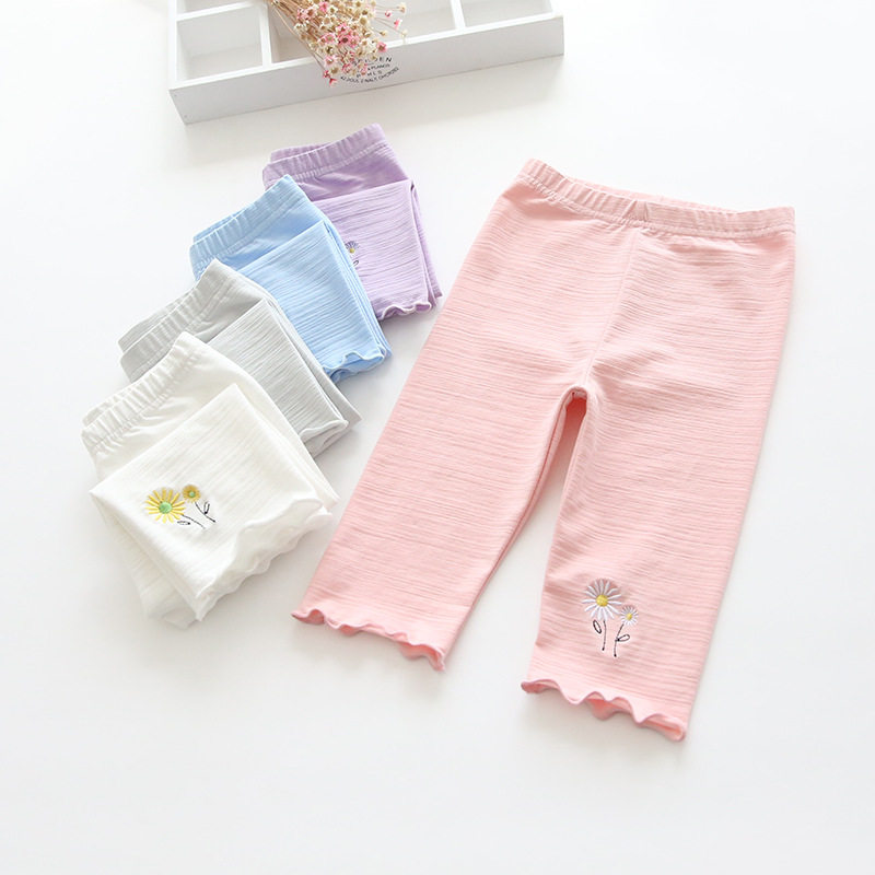 Girls pure cotton pentate pants summer thin children baby 7 repair elastic leisure 7 min pants in 5 min pairs