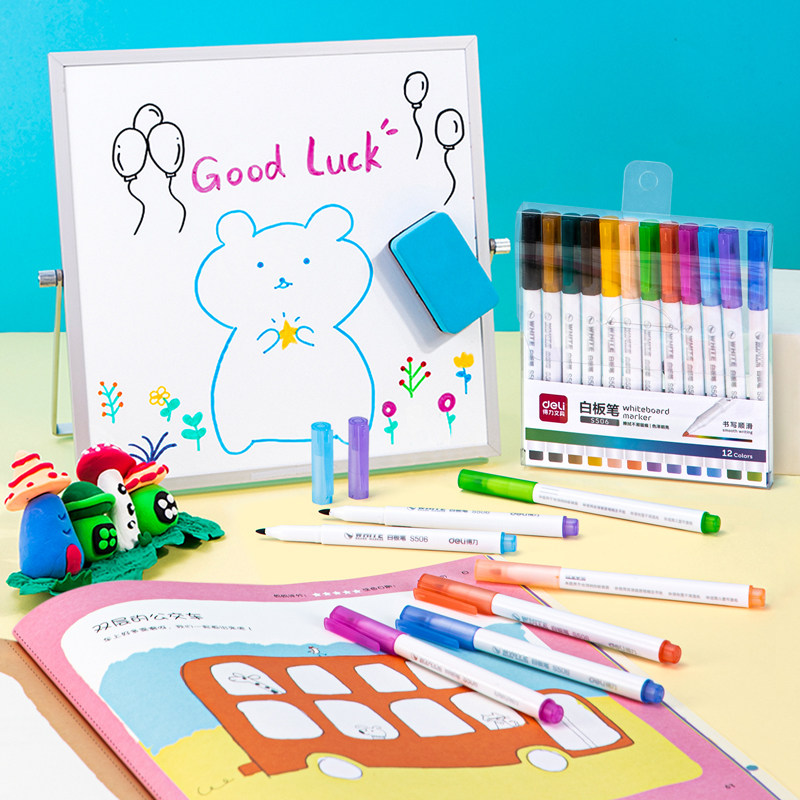 Deli whiteboard pen can wipe children's color 12 color drawing board pen graffiti pen office supplies stationery s506 student teacher water-based pen black color red blue black