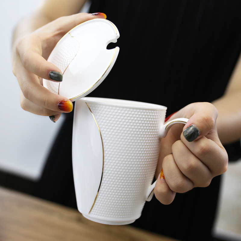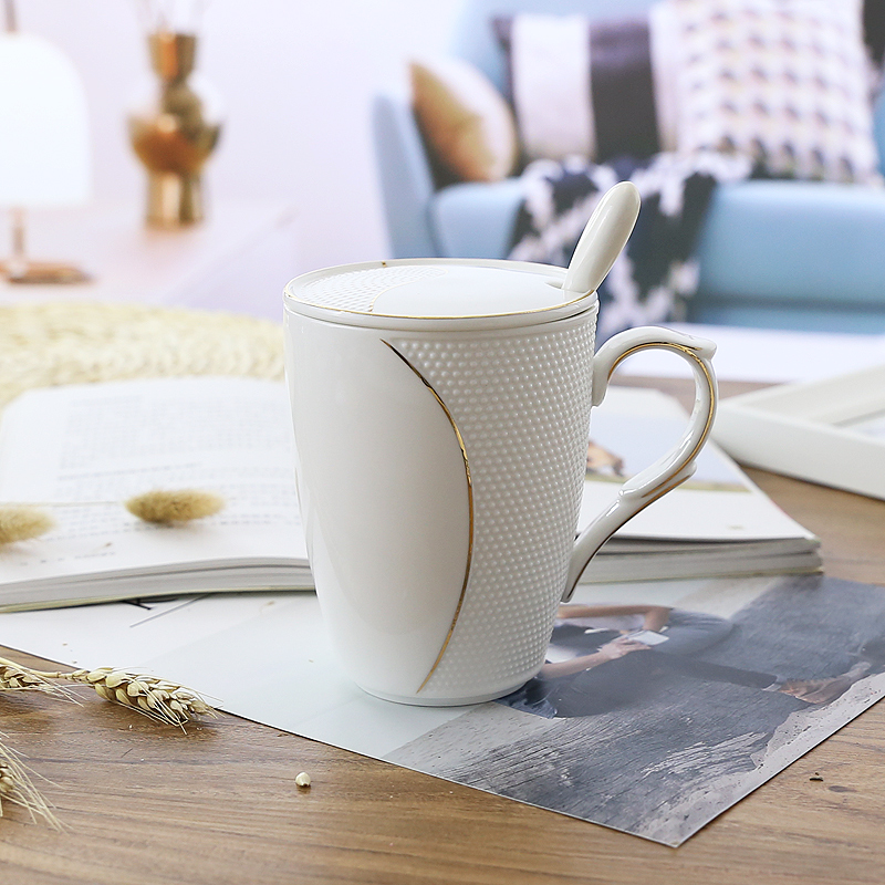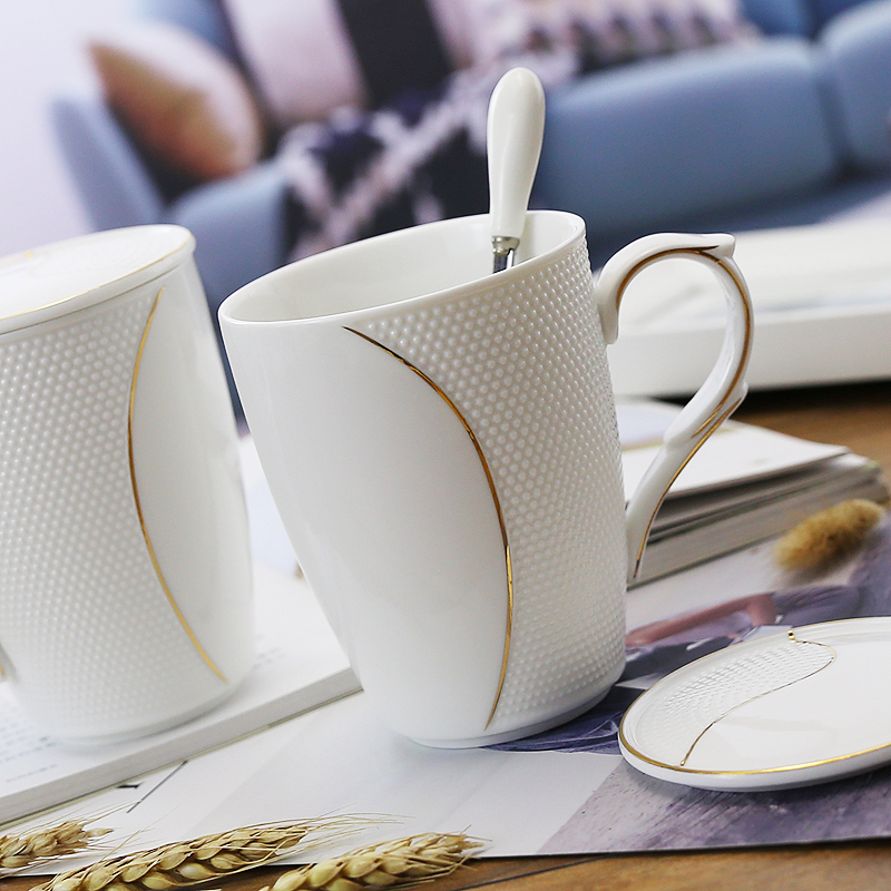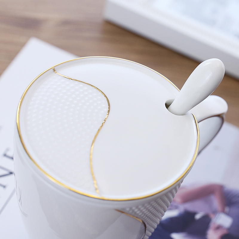 Simple fashion mug water cup office cup ceramic cup couple cup coffee cup milk cup with lid to send spoon
