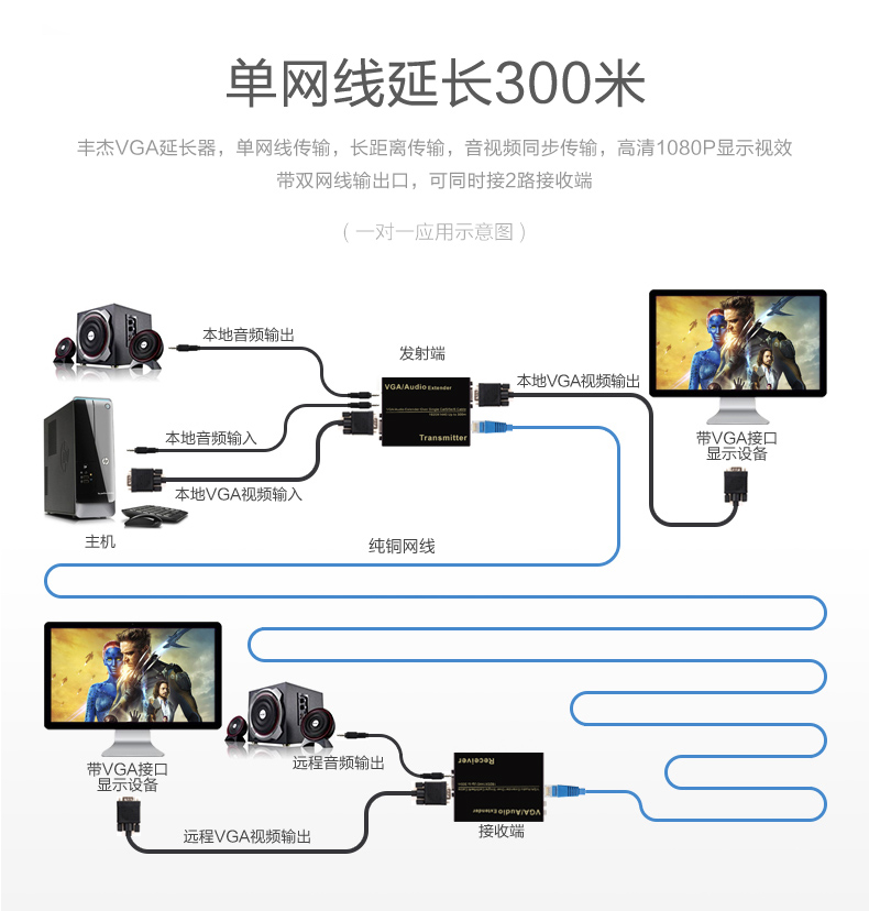 Special price vga extender 100200300 m single net route audio-video amplifier vga turn rj45 transmitter