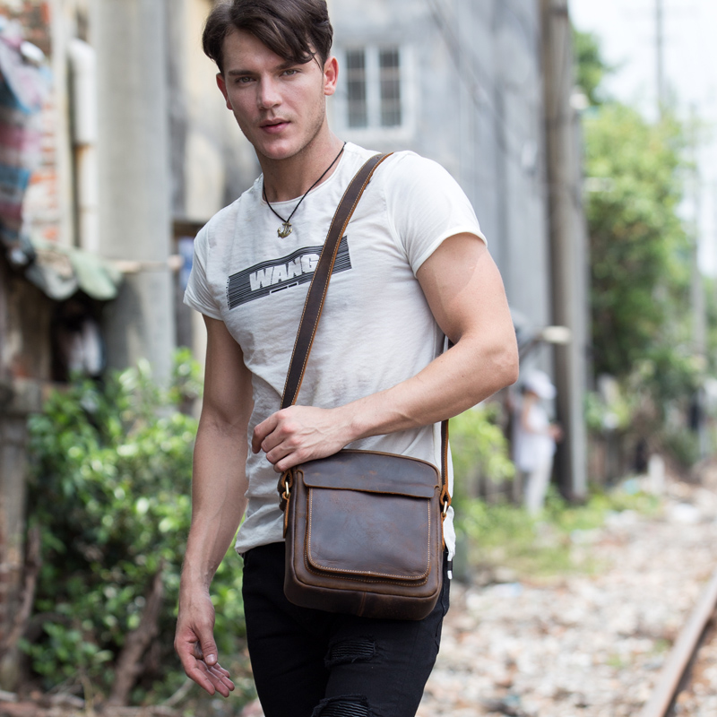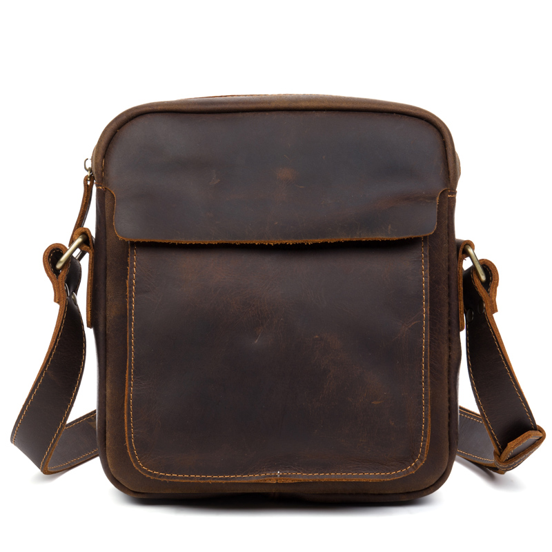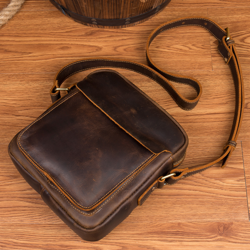 Hand made old man bag mad muppie single shoulder bag retro genuine leather men casual small satchel head layer cow leather skew satchel