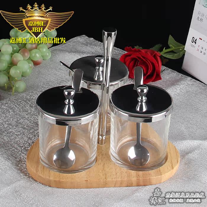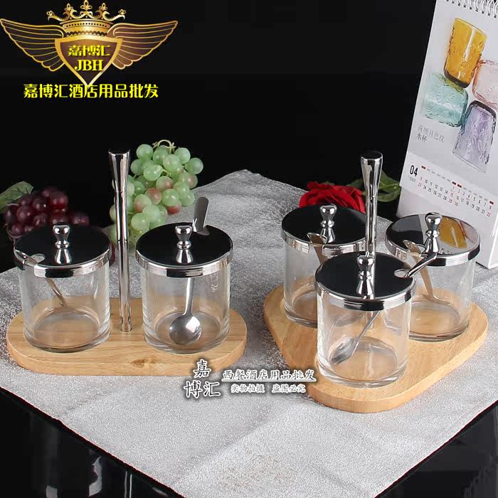 Seasoning Jar Seasoning Box Set Glass Seasoning Bottle Oil Pot Salt Shaker Stainless Steel Kitchen Supplies Set Seasoning Jar