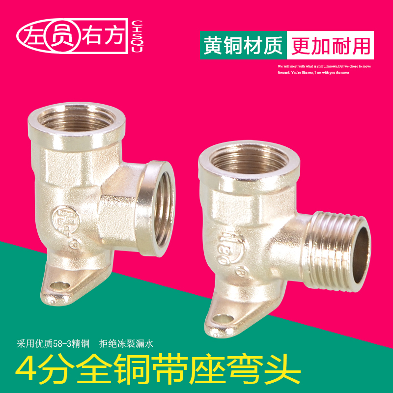 All copper 4 points with seat double inner wire elbow inner and outer teeth wall solar pipe faucet water outlet fixer accessories