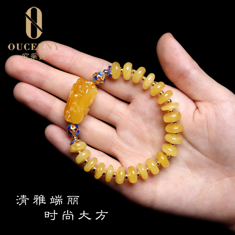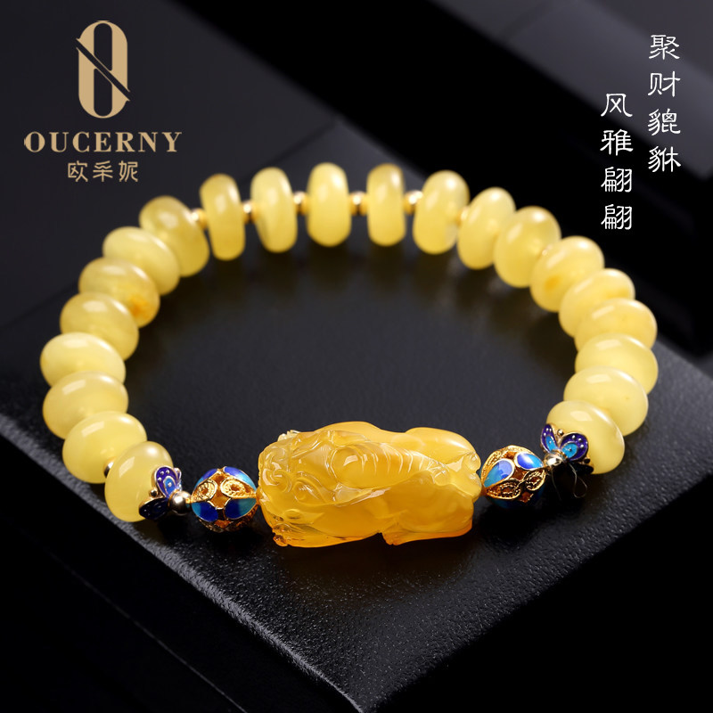 Europise nectar bracelet Natural amber Amber Leopard PINCH ENAMEL SEPAL SEPTER SEPAL BEADS NO OPTIMISATION FULL NECTAR HANDMADE WOMAN