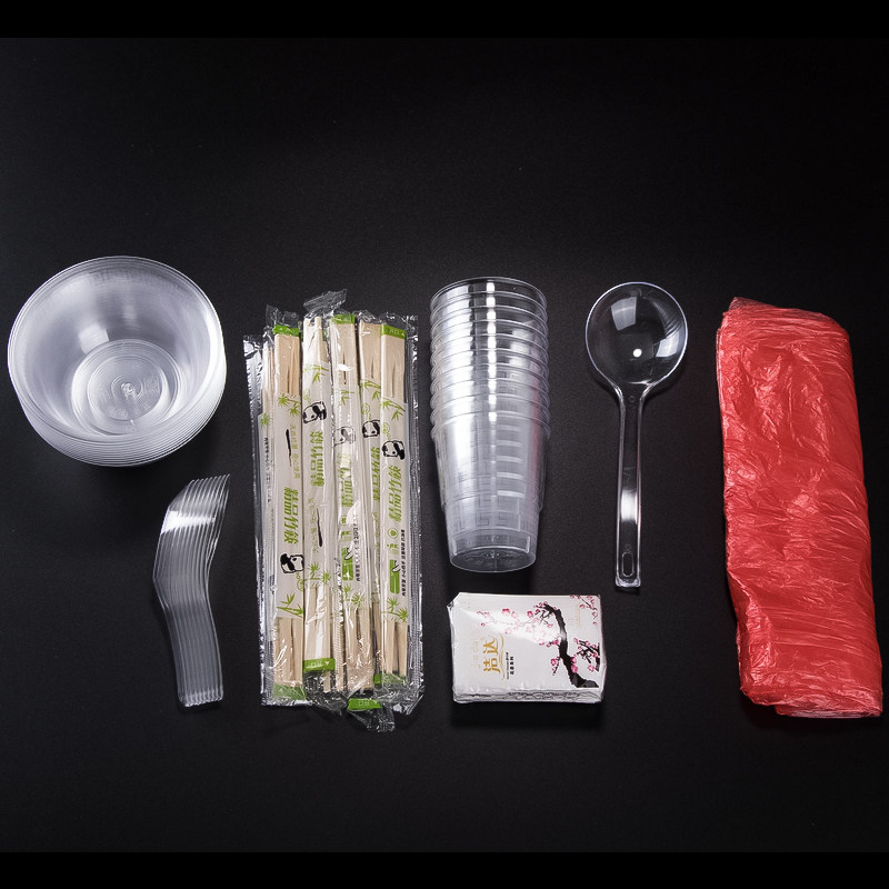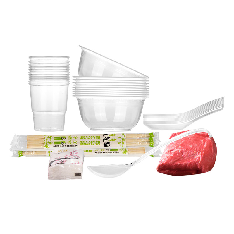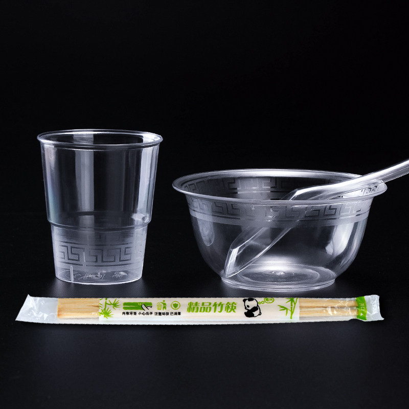 Disposable Aerial Crystal Cutlery PS Hard Plastic Barbecue Bowl Spoonful Cup Hotel Banquet XI set 5 packs
