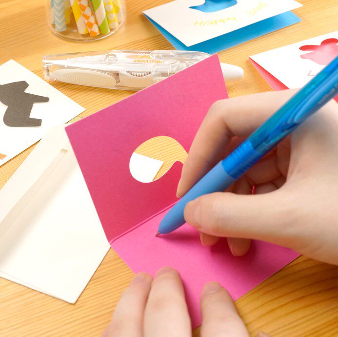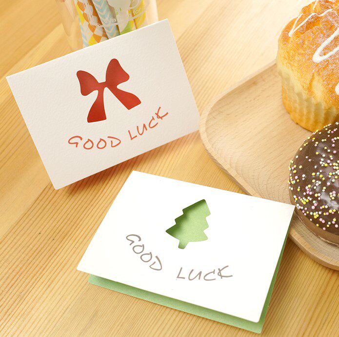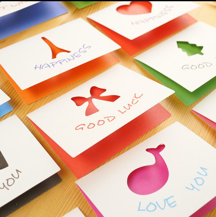 Korean creative cute hollow small greeting card with envelope cartoon Elf Holiday greeting card Birthday gift blessing card