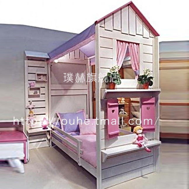 Girls princess bed children's room bed dream house bed combination tree house room bed with guardrail multi-functional pink