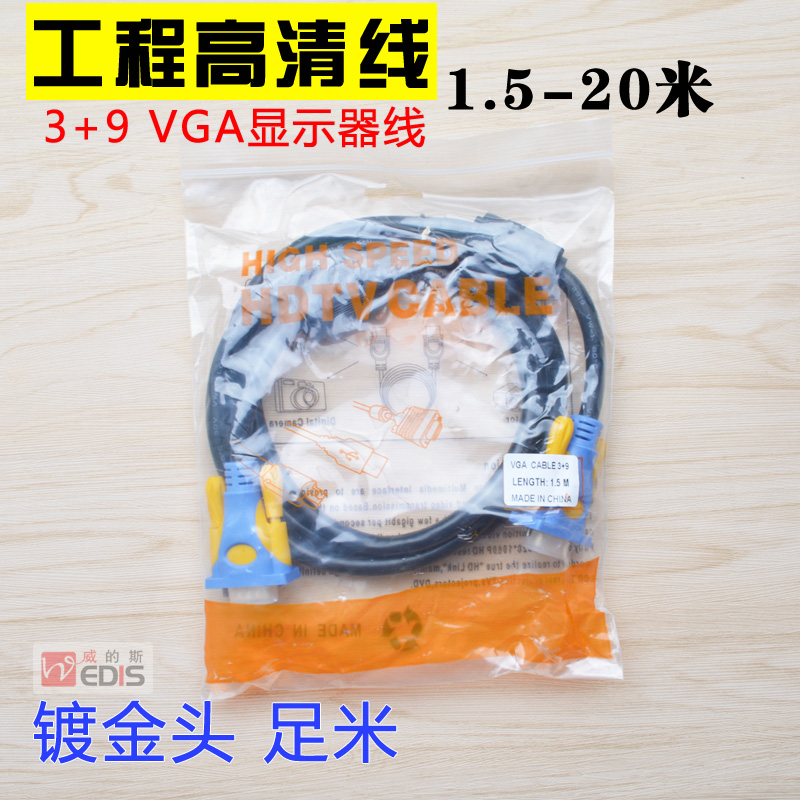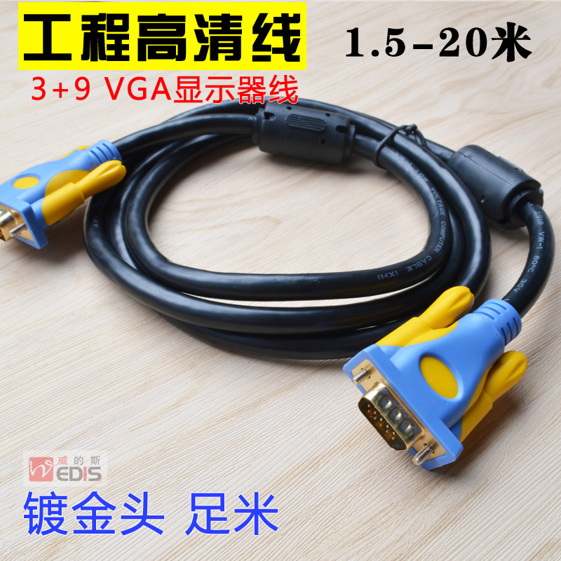 3 9 original copper plated gold head VGA wire 1 5m 3m 5m 10m 15m 20 m computer HD video line