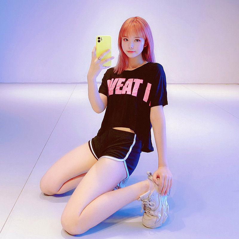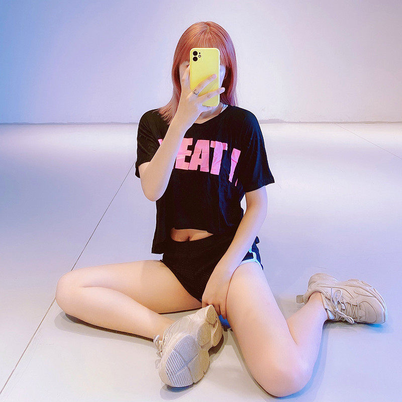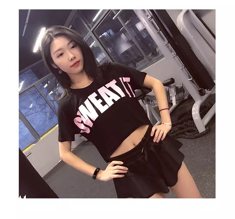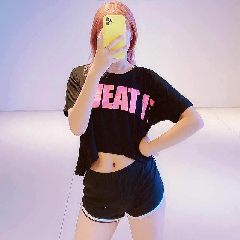 Fitness women's short-sleeved blouse loose letter short open waist yoga suit Running leisure sports T-shirt special offer