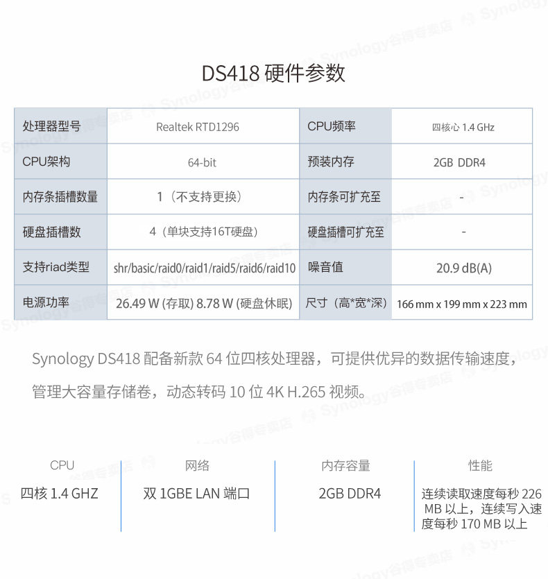 Synology Synology DS418 Enterprise Server NAS Network Cloud Storage Network Disk Home Private Cloud Disk Network Memory Enterprise Office Shared Private Disk Synology Server Home