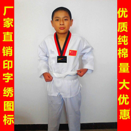 Taekwondo suit children's cotton training suit long sleeves short sleeves adult men and women taekwondo clothes polyester cotton printed word custom