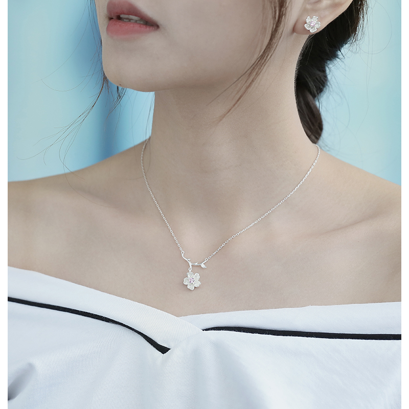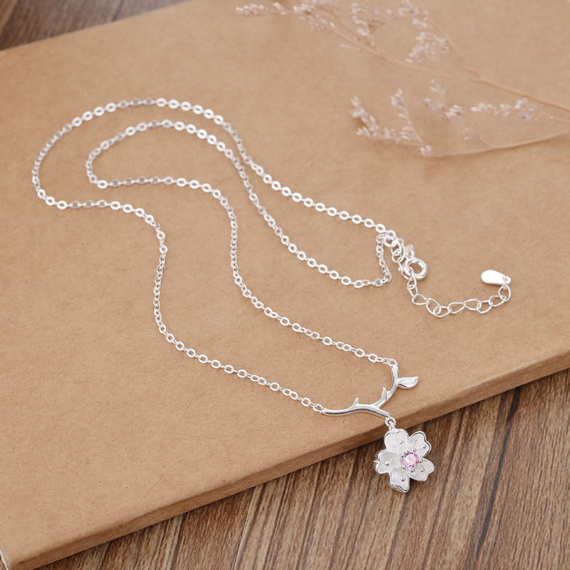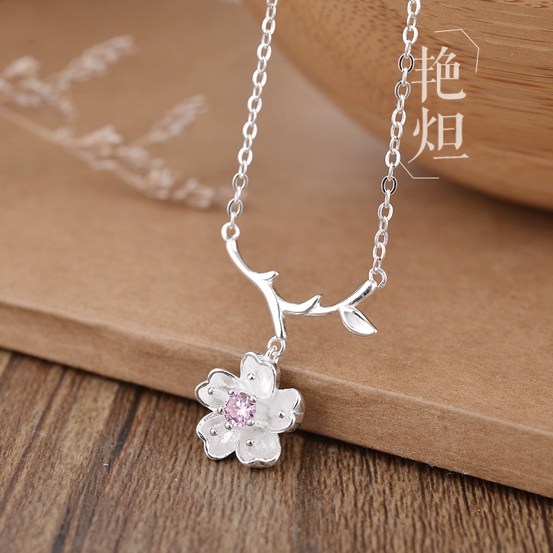 Cherry Blossom Necklace Temperament Lock Bone Chain Woman Pure Silver Adorable Sen Flowers Pendant Japan-South Korea Sweet 925 Silver Accessories Gift