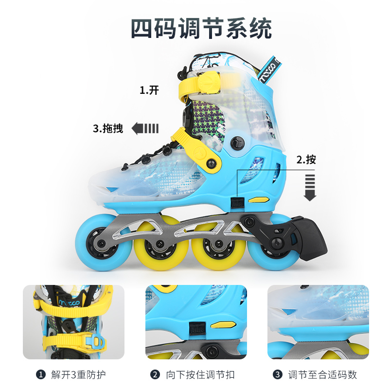 Rice High Wheel Skating Shoes Children Figure Ice Skates Full Suit Flat Flower Shoes Adjustable Straight Row Wheel Flower Style Dry Ice Beginner S7-Taobao