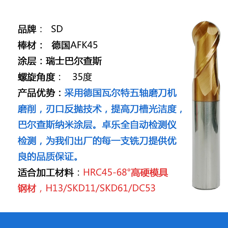 Imported 65-degree tungsten steel ball head milling cutter high-speed machine quenching mold steel special alloy coating R2R3R4R5 lengthened