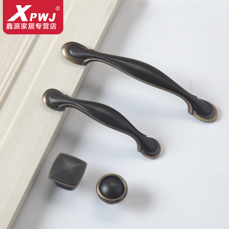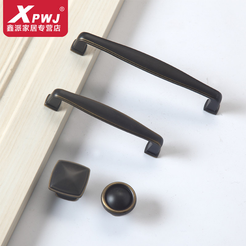 European style simple cabinet door handle Chinese antique yellow bronze handle vintage shoe cabinet wardrobe cabinet drawer handle