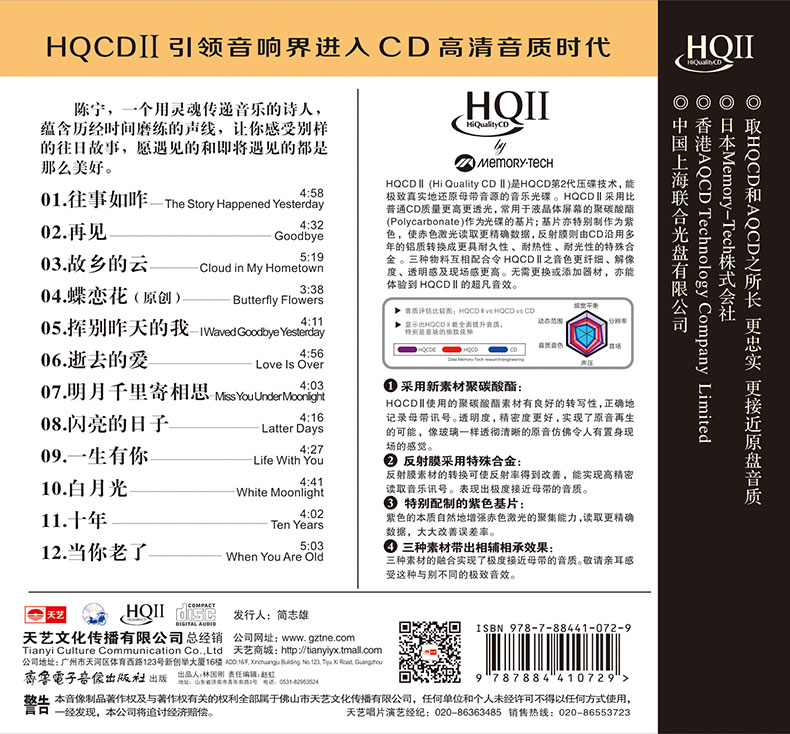 Genuine fever discs Chen Ning's past as yesterday HQ2CD HQII 1CD high-quality fever car CD