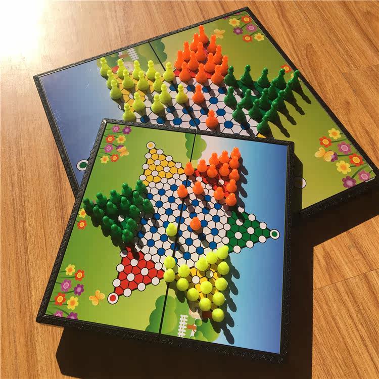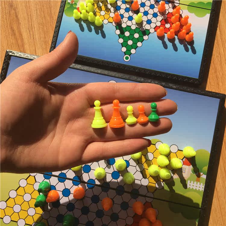 Large Chinese checkers Magnetic Children's puzzle folding game chess Adult student magnetic checkerboard storage box