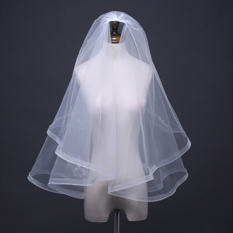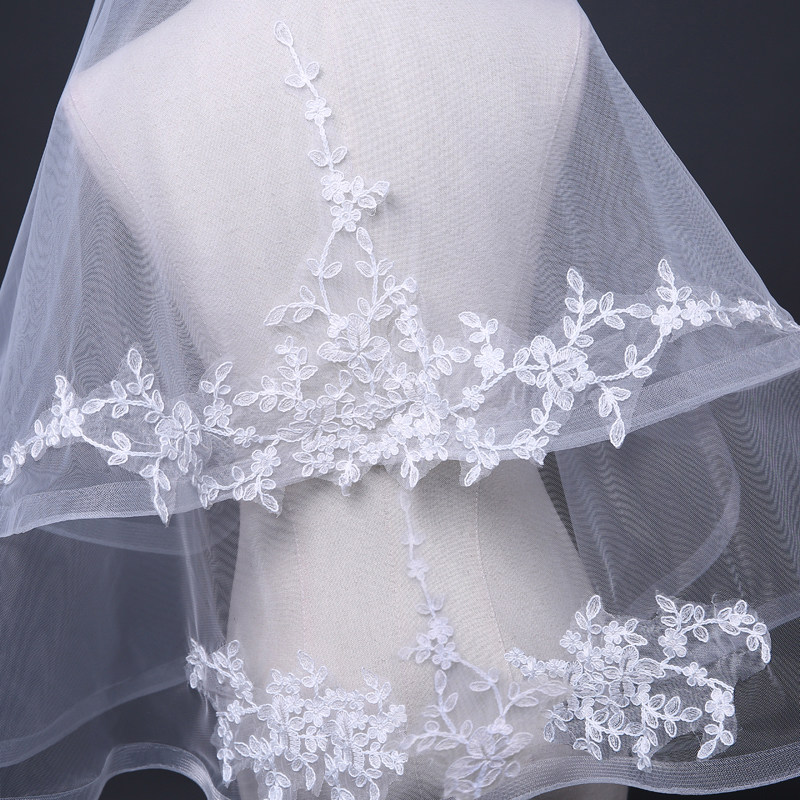 New bridal short veil hairbrush cover white beautiful wedding veil lace edge elegant