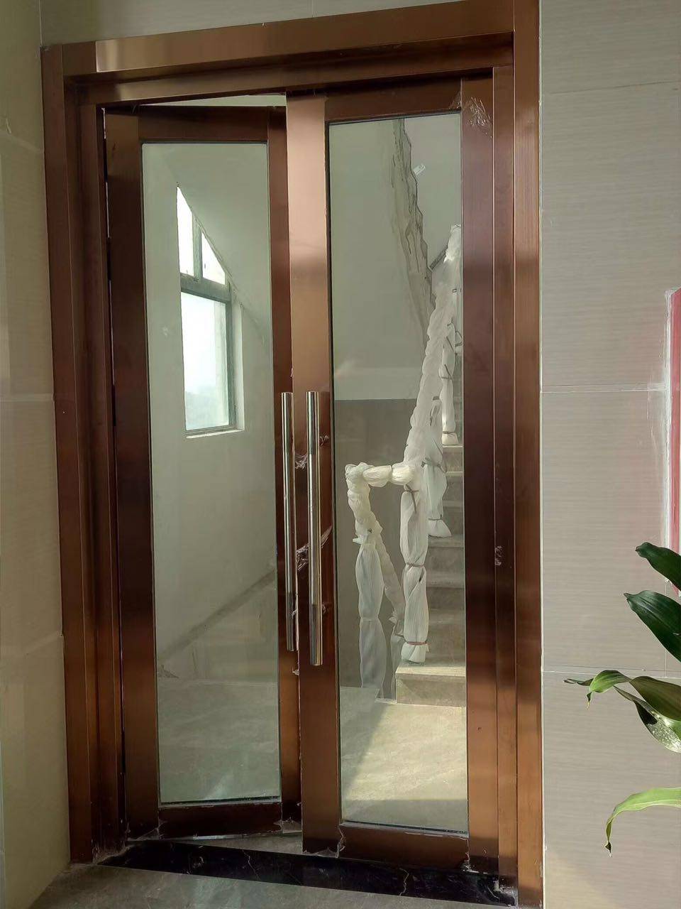Factory direct supply rose gold stainless steel glass fire door with complete national delivery documents