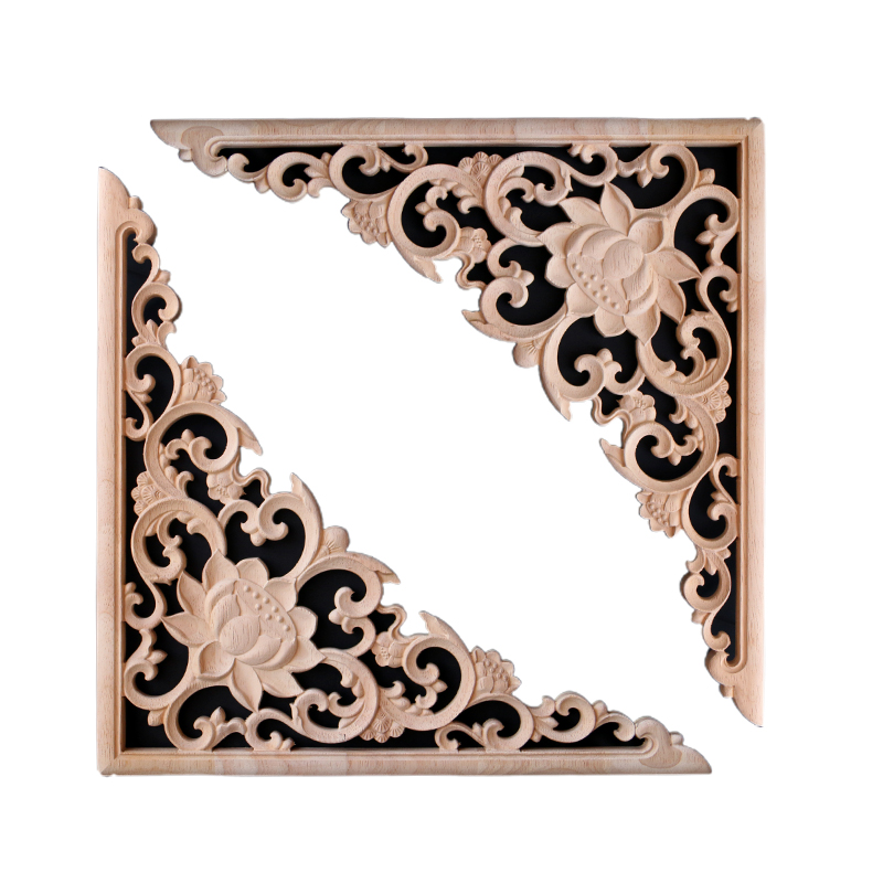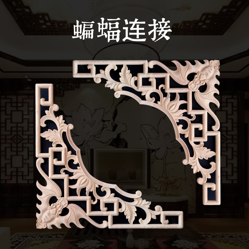 Dongyang wood carving Ruyi horn flower Chinese ceiling bat lotus appliqué gun angle antique partition entrance lattice